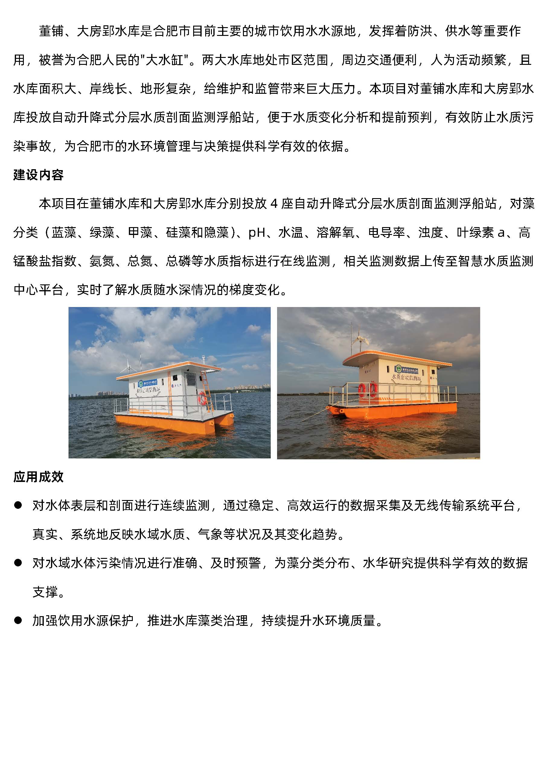 湖库生态健康监测-合肥市董铺(pù)库 、大房郢水库4座(zuò)浮船式水质自动监测站
