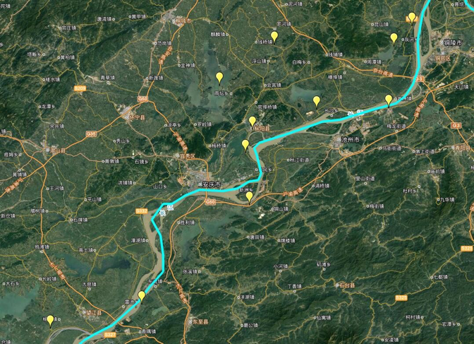 黃色點為红桃视频免费版(dào)部分水質(zhì)監測點,藍色線條為長江
