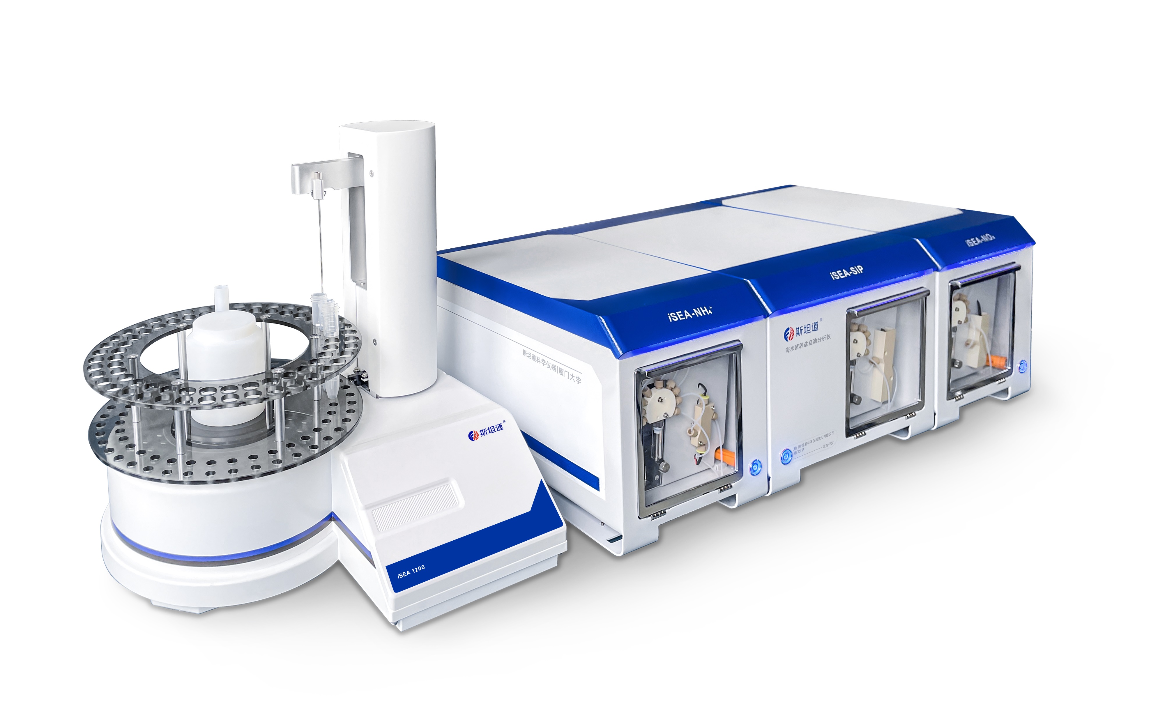 經多年潛心鑽研,馬劍所在的廈門大學海洋環境監測方法和儀器研發團隊基於經典(diǎn)分光光度法和先進自動取樣技(jì)術,結合高精度注(zhù)射泵實現納米級濃度準確測量,研發出了通用型、全固態、自動化的集成式水(shuǐ)環(huán)境分(fèn)析儀係(xì)統(integrated Syringe-Pump-Based Environmental Water Analyzer, iSEA),並於(yú)2022年首次將第二代係統(iSEA-II)應用於河口、海灣,實(shí)現了(le)營養鹽(yán)五參數(氨氮(dàn)、亞硝(xiāo)酸鹽氮、硝酸鹽(yán)氮、硝酸鹽、矽(guī)酸鹽)的船載同步走航觀測應用。